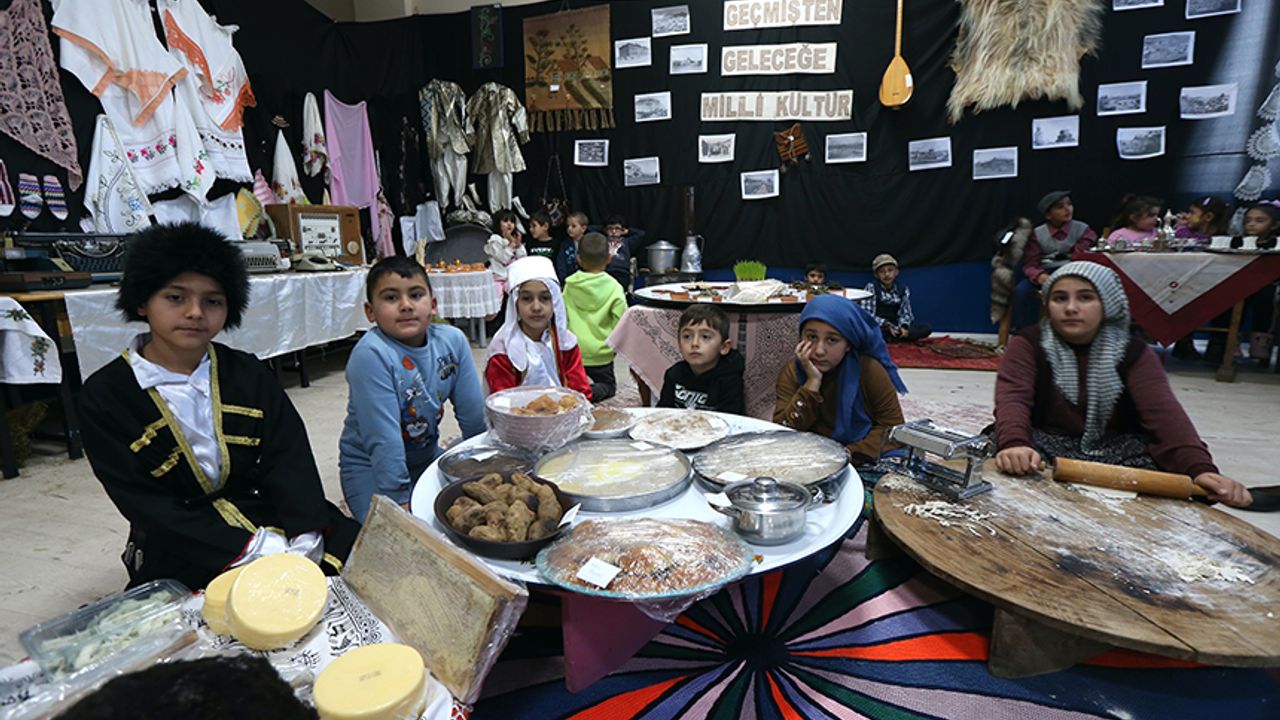 Atatürk İlkokulu'nda "Geçmişten Geleceğe Milli Kültür" projesi kapsamında, geçmişte kullanılan asırlık eşyalar ile gelenek ve göreneklerin anlatılması için çalışma yapıldı.
