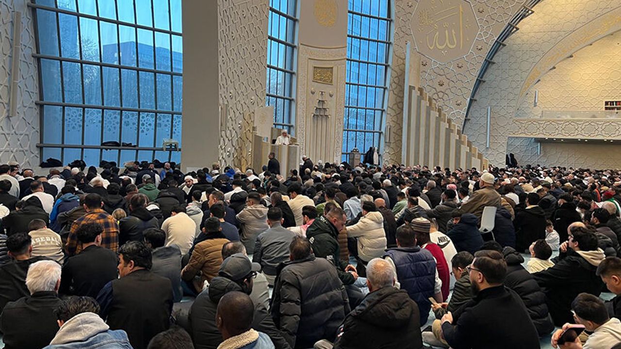 Müslümanların yoğun yaşadığı Köln'de, DİTİB Genel Merkezi bünyesindeki Köln Merkez Camisi'ne sığmayan cemaat, namazlarını dışarıda tahsis edilen alanda kıldı.