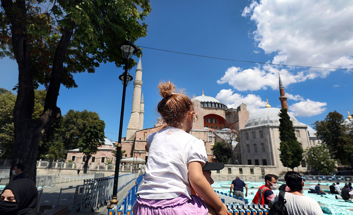 24 Temmuz’da kılınan cuma namazıyla birlikte yeniden ibadete açılan Ayasofya-i Kebir Camii Şerifi'ne ziyaretçilerin yoğun ilgisi sürüyor.