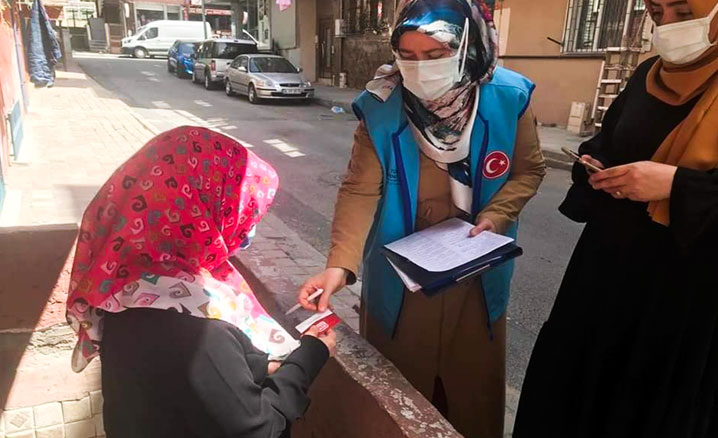 Bağcılar İlçe Müftülüğü ve TDV Bağcılar Şubesi iş birliğinde hayırseverlerin destekleri ile temin edilen alışveriş kartları, TDV Bağcılar Şubesi Kadın Kolları Gönüllüleri tarafından ihtiyaç sahibi ailelere teslim ediliyor.
