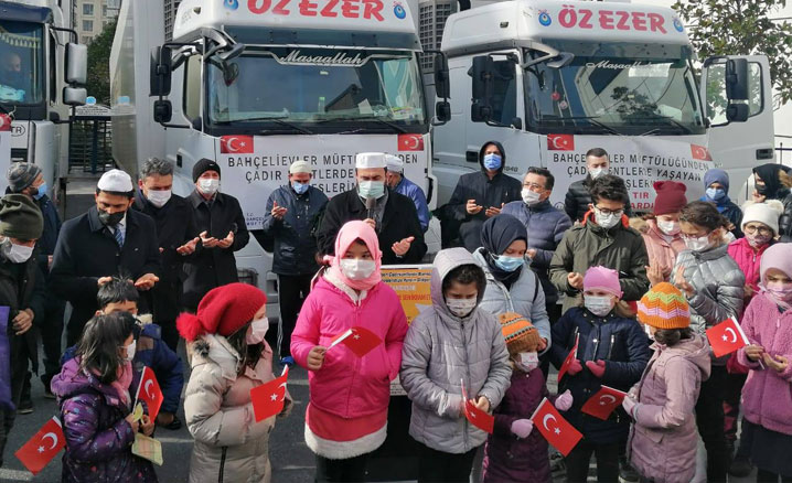 Toplanan yardımların uğurlanması amacıyla Bahçelievler Hazreti Ebubekir Camii'nde uğurlama töreni düzenlendi.
