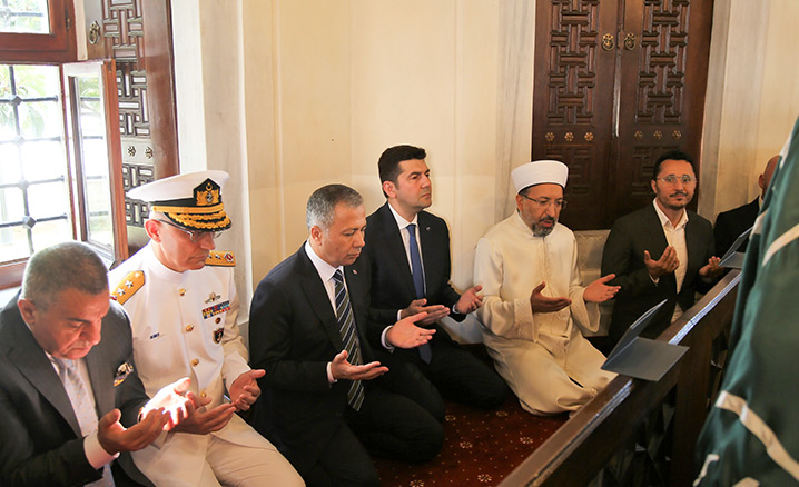 Konuşmaların ardından Barbaros Hayrettin Paşa türbesi ziyaret edilerek Kur’an-ı Kerim tilavet edildi ve şehitler için okunan hatimlerin duası İstanbul Müftüsü Prof. Dr. Safi Arpaguş tarafından yapıldı.
