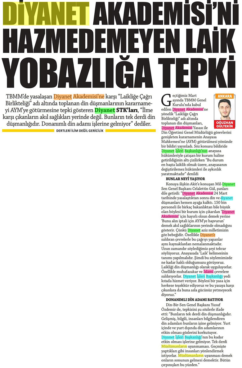 Bugün gazeteler Diyanet'le ilgili ne yazdı?