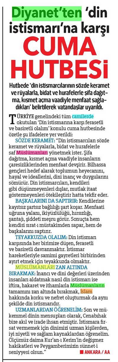 Bugün gazeteler Diyanet'le ilgili ne yazdı?