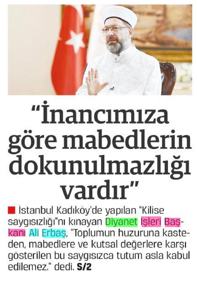 Bugün gazeteler Diyanet'le ilgili ne yazdı?