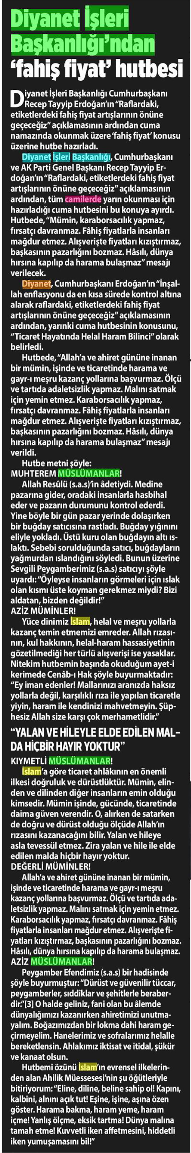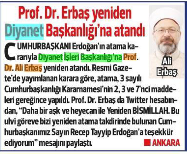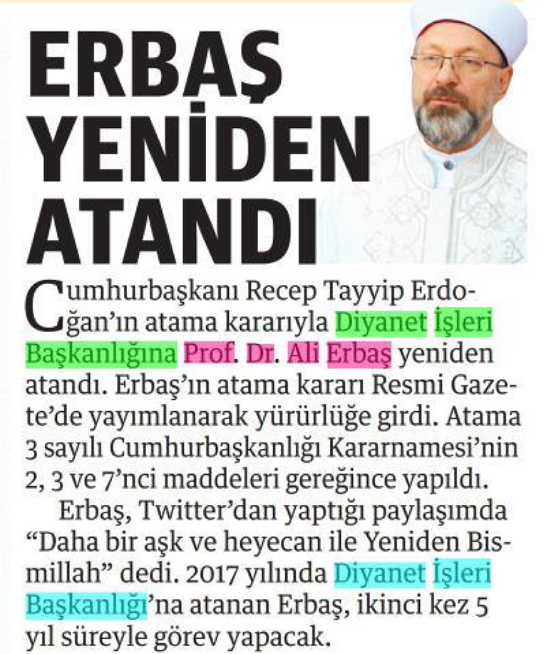 Bugün gazeteler Diyanet'le ilgili ne yazdı?