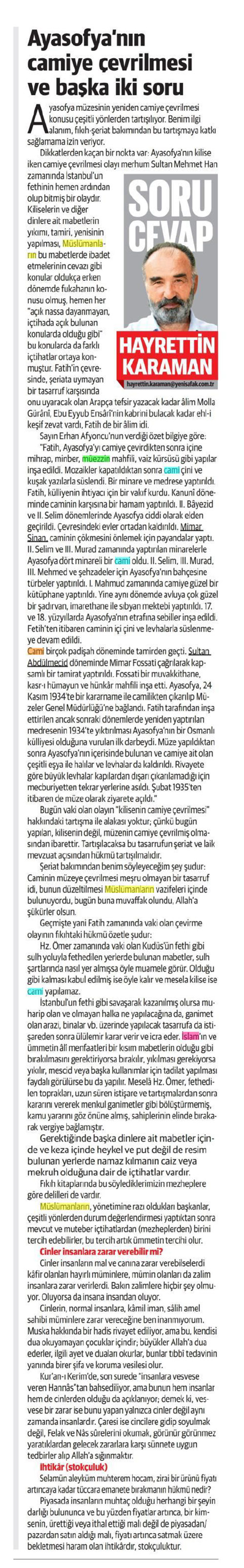 Bugün gazeteler Diyanet'le ilgili ne yazdı?