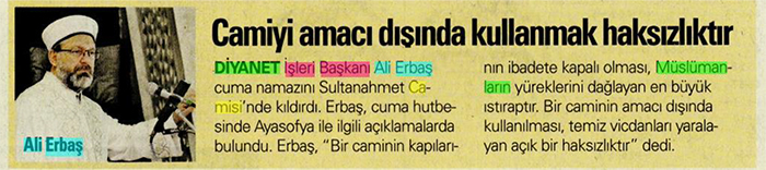Gazeteler bugün Diyanet'le ilgili ne yazdı?