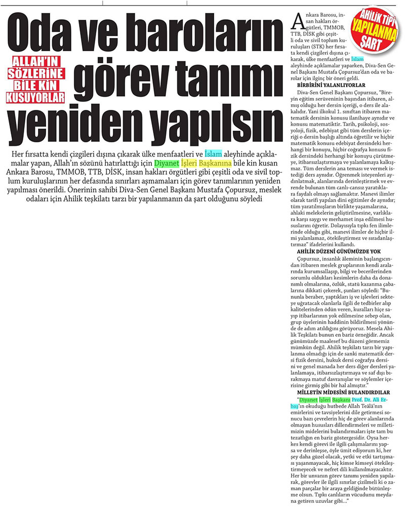 Bugün gazeteler Diyanet’le ilgili ne yazdı?