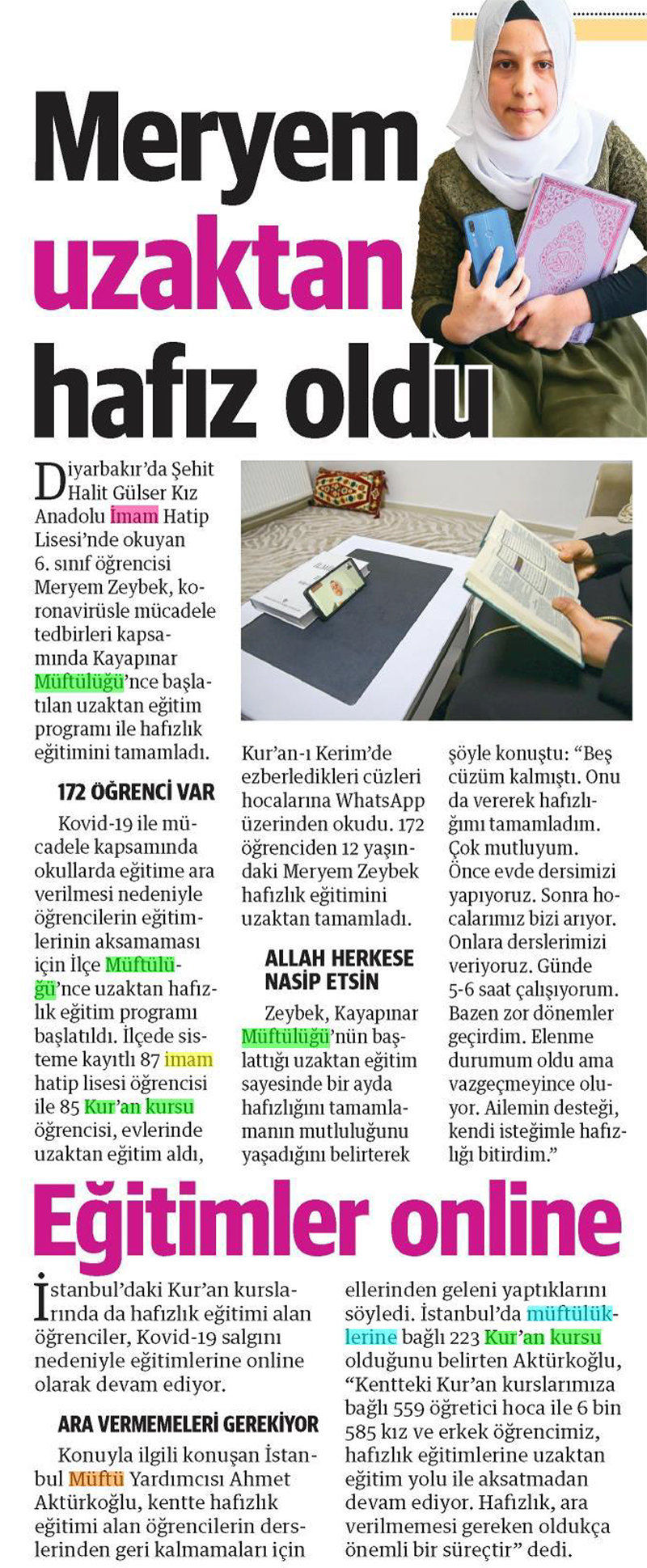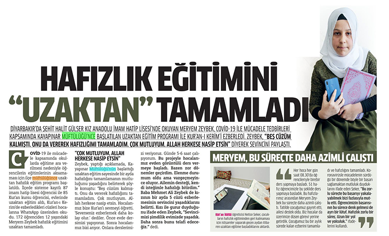 Proje İmam Hatip Ortaokulu öğrencisi 6 Ayda hafız oldu