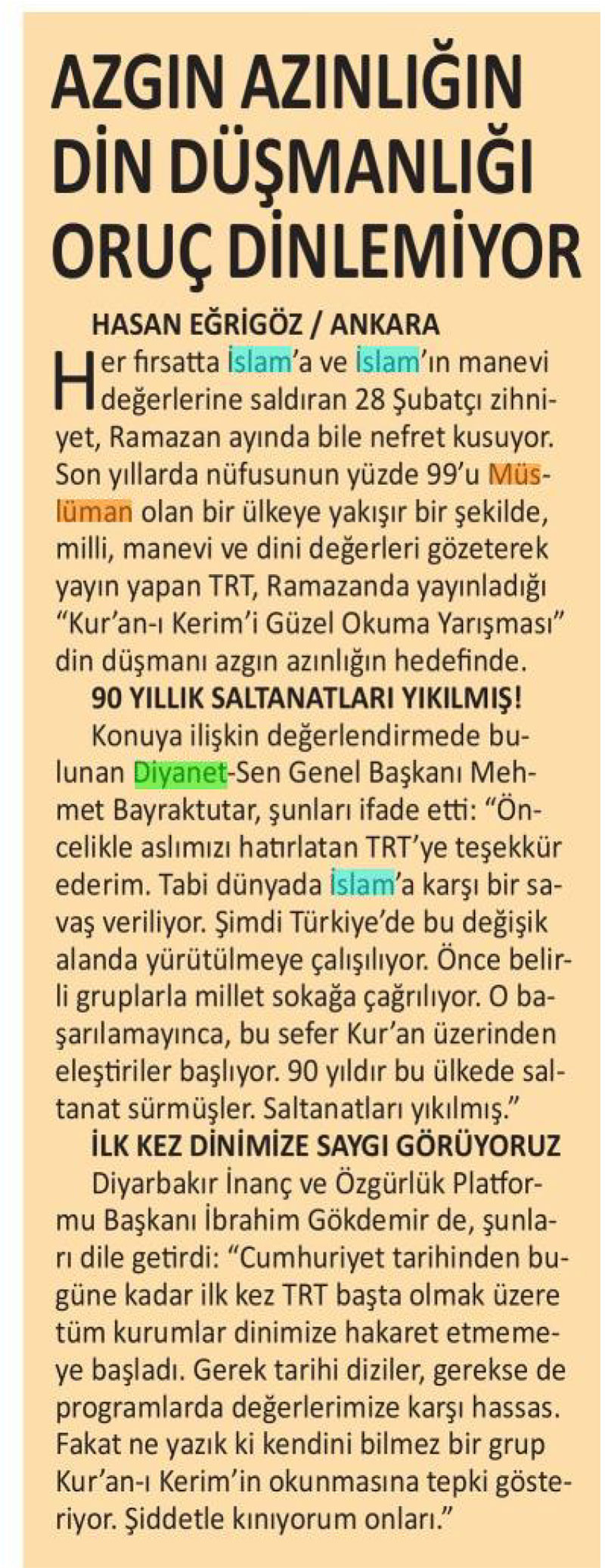 Bugün gazeteler Diyanet’le ilgili ne yazdı?