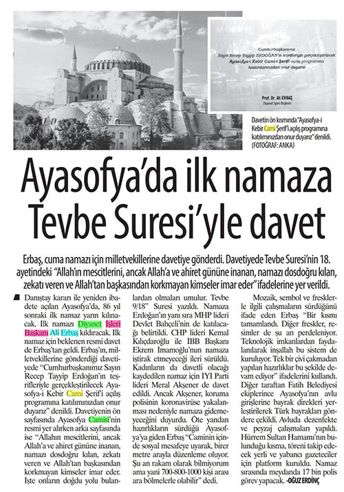 Bugün gazeteler Diyanet'le ilgili ne yazdı?