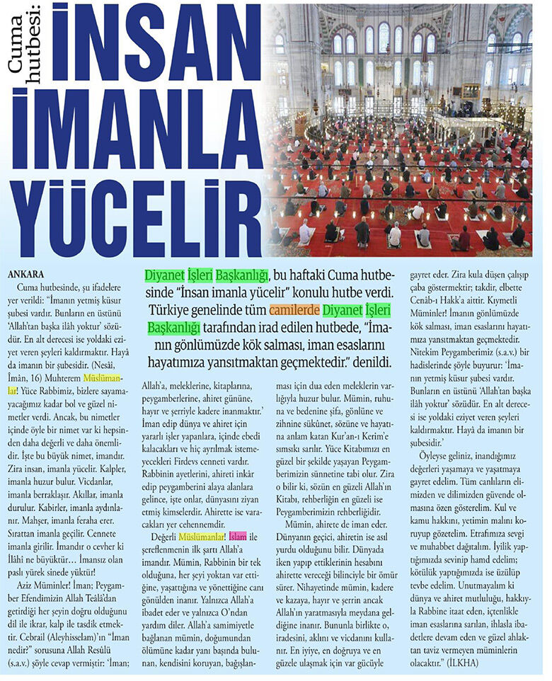 Bugün gazeteler Diyanet'le ilgili ne yazdı?