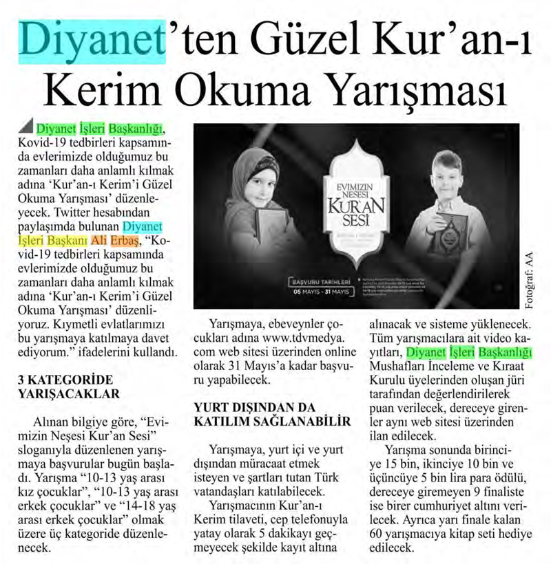 Diyanet Haber, Anadolu Ajansı ve İHA abonesidir. Bu sitede "ajans kaynaklı haberler" hariç diğer haberlerin AKTİF LİNK kaynak belirtilerek kullanılması serbesttir.