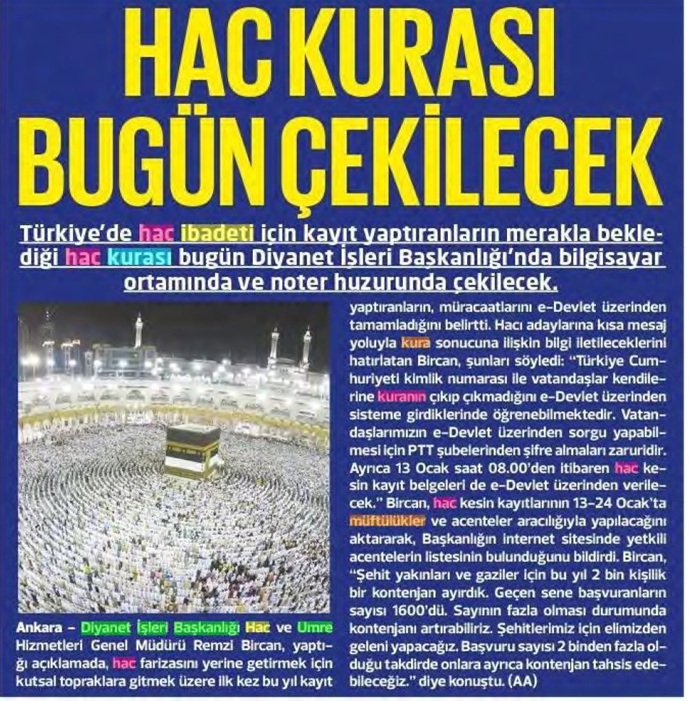 Diyanet Haber, Anadolu Ajansı ve İHA abonesidir. Bu sitede "ajans kaynaklı haberler" hariç diğer haberlerin AKTİF LİNK kaynak belirtilerek kullanılması serbesttir.