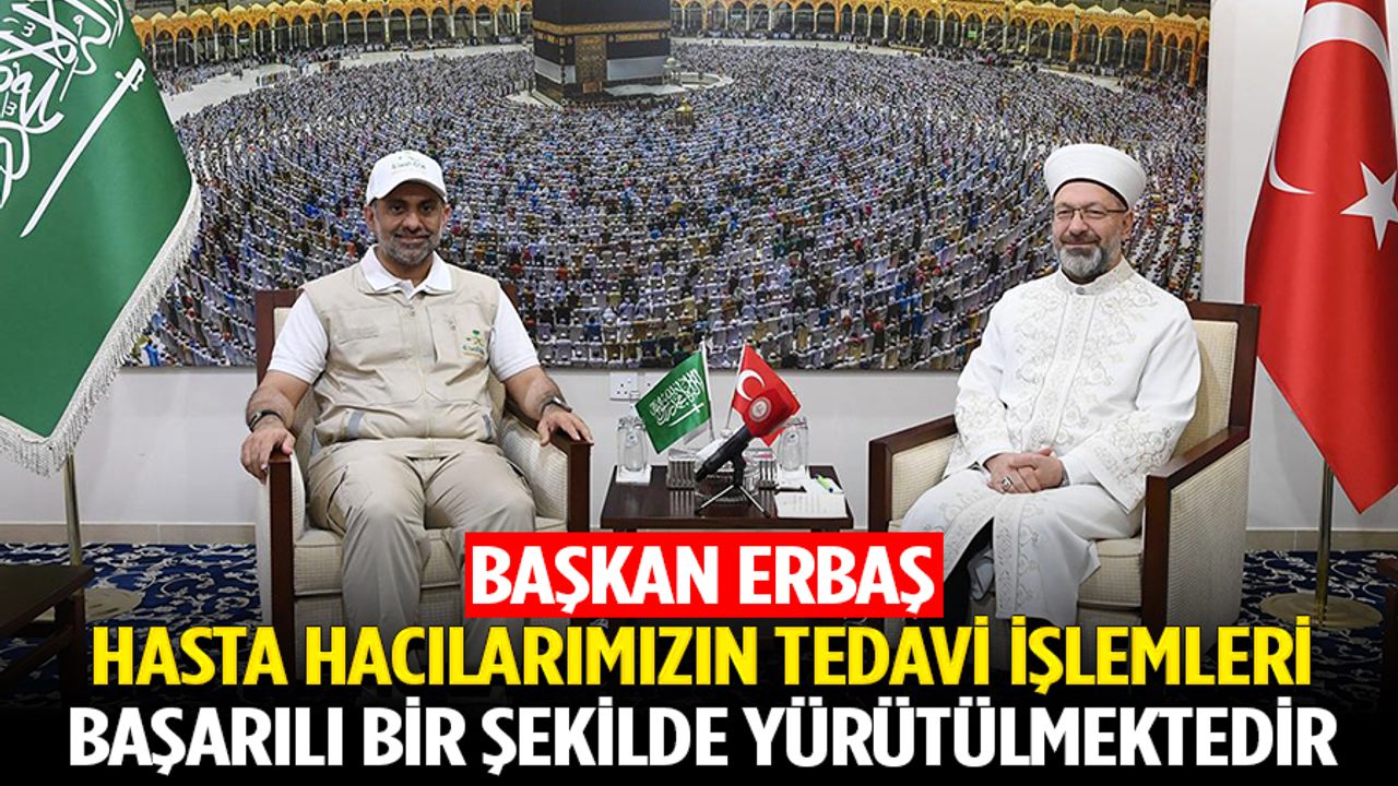 Bugün itibariyle Mekke’de bulunan Suudi Arabistan hastanelerinde 31 hastanın yatılı olarak tedavi altında olduğunu, biri trafik kazası olmak üzere 8 vatandaşın vefat ettiğini dile getiren Başkan Erbaş, “Hali hazırda anlık değişmekle birlikte acil ve poliklinik gözlemlerde 17 hastamız müşahede altında hastanemizde tedavi altında bulunmaktadır. Her yıl olduğu gibi bu yıl da Suudi Arabistan Sağlık Bakanlığının ciddi çalışmaları ve yardımlarıyla hem sağlık merkezlerimize gelen hem de doğrudan Suudi Arabistan hastanelerine giden hasta hacılarımızın tedavi işlemleri başarılı bir şekilde yürütülmektedir. Bu vesileyle Sayın Bakanımıza, heyetine hem katkılarından hem de nazik ziyaretlerinden dolayı teşekkür ediyorum.” ifadelerini kullandı.