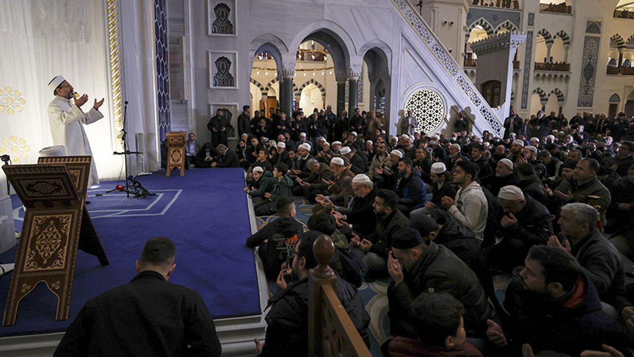 Sabah namazını cemaate kıldıran Başkan Erbaş, Kur'an-ı Kerim tilavetinin ardından yaptığı konuşmada, yeryüzünde her şeyin Allah'ı tespih ettiğini söyledi.