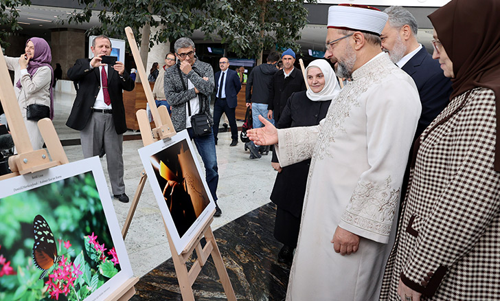 Diyanet İşleri Başkanı Erbaş, konuşmasının ardından serginin açılışını yaparak, fotoğrafları inceledi.