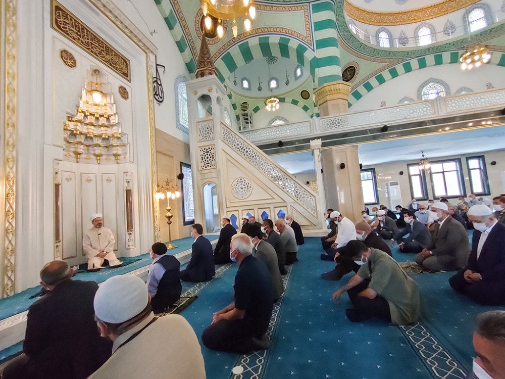 Açılış öncesi camide cemaate seslenen Başkan Erbaş, birlik ve beraberliğin sembol yeri camilerin imarının önemine değinerek, "Camilerimizi nasıl bina olarak imar ediyorsak içini de öyle imar etmek zorundayız. Tezyinatı ve hatları önemlidir. Ama bunlardan daha önemlisi cemaatinin bol, gençlerle ve çocuklarla içlerinin süslenmiş olmasıdır.” dedi.