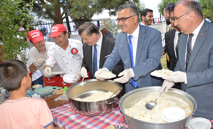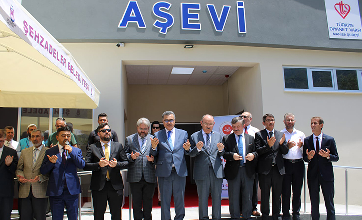 Konuşmaların ardından Manisa Diyanet Eğitim Merkezi Müdürü Vehbi Özkar tarafından edilen dua ve kesilen kurdele ile Aşevinin açılışı gerçekleştirildi. Tesisin gezilmesinin ardından protokol üyeleri vatandaşlara tavuklu pilav dağıttı.