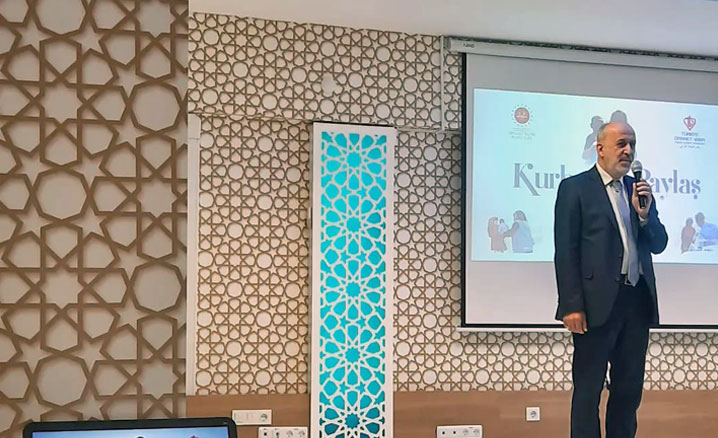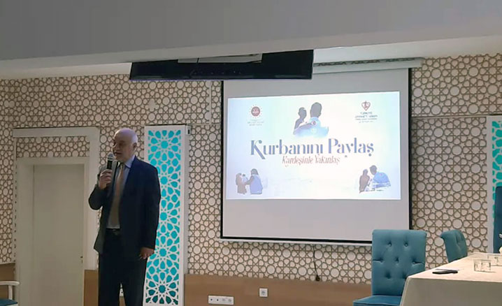 Ardından kürsüye davet edilen Başkanlık Müftüsü Ümit Çimen ise TDV’nin “Kurbanını Paylaş, Kardeşinle Yakınlaş” temasıyla düzenledikleri Vekaletle Kurban Organizasyonu ile bu yıl 25 milyondan fazla ihtiyaç sahibine ulaşmayı hedeflediğini aktardı.