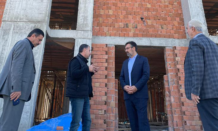 İl Müftüsü Turgut Erhan, İl Müftü yardımcılarıyla birlikte kaba inşaatı tamamlanan ve yapımına devam edilen camide incelemelerde bulundu.