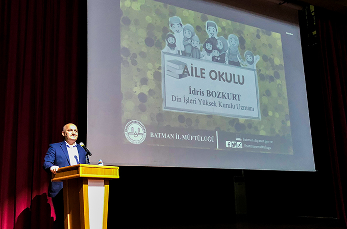 Ardından Batman Üniversitesi İslamî İlimler Anabilim Dalı Başkanı Dr. Davut Okçu, “Ergenlik Döneminde Gençlerle İletişim” konulu bir sunum yaptı.,