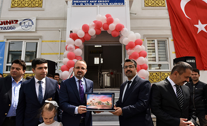 Açılışta konuşan Bayramiç İlçe Müftüsü Rıdvan Seletli, "4-6 yaş Kur’an Kurslarımızda yaşlarına uygun eğitim materyalleri ile el becerileri, paylaşma kültürü ve eğitime hazırlık çalışmaları ile birlikte el yıkamadan tertipli ve düzenli olmaya, arkadaşları ile paylaşma kültüründen anne babaya saygıya, per çok konuda eğitim vermeye çalışıyoruz. Yine kabiliyetleri ölçüsünde Kur’an-ı Kerim okuma, namaz sure ve dualarını da öğretmeye çalışıyoruz. Açılışını yapmakta olduğumuz 4-6 yaş Kur’an kursumuz ismini millet olarak bizde ayrı bir yeri ve önemi olan, aynı zamanda Bayramiçli hemşerimiz olması sebebiyle bizim için ayrı bir değere sahip olan milli şarimizin Mehmet Akif Ersoy’dan almaktadır. Merhum Akif’in şiirlerinde ideal genç olarak ortaya koyduğu, onun rüyası ve hülyası olan ideal gençliğin tohumlarının yetişmesi için kursumuza büyük şairin ismini verdik." dedi.