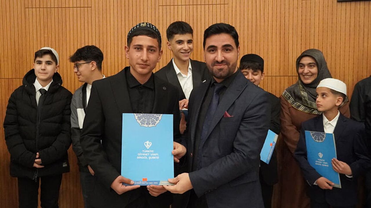 Bingöl İl Müftülüğüne bağlı hafızlık Kur’an kurslarında eğitimlerini başarıyla tamamlayan 19 hafız öğrenci, Diyanet İşleri Başkanlığı tarafından düzenlenen 2026 yılı 1. Dönem Hafızlık Tespit Sınavı’nda başarılı olarak hafızlık belgesi almaya hak kazandı.
