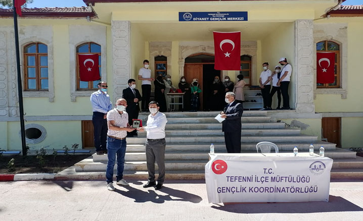 Antalya Bölge Vakıflar Genel Müdürlüğünce Tefenni İlçe Müftülüğüne süresiz olarak tahsis edilen tarihi bina Kaymakamlık, Müftülük, Belediye ve hayırsever vatandaşların desteği ile yenilenerek gençlerin hizmetine sunuldu.