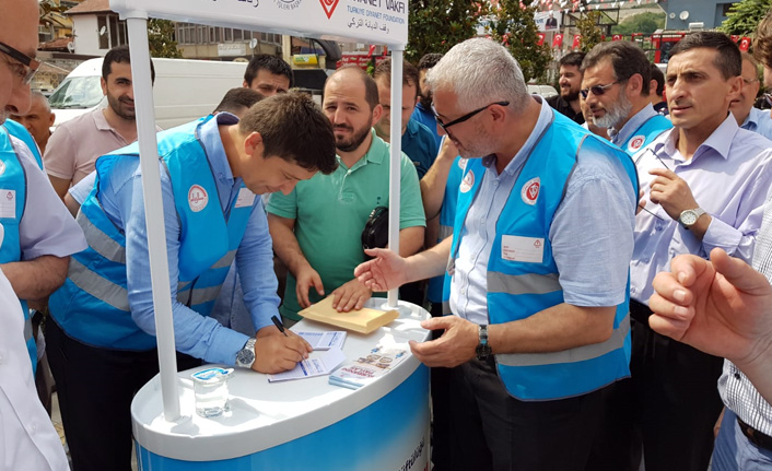 Açılışın ardından ilk bağışı İlçe Müftüsü Hasan İzmirli yaptı.