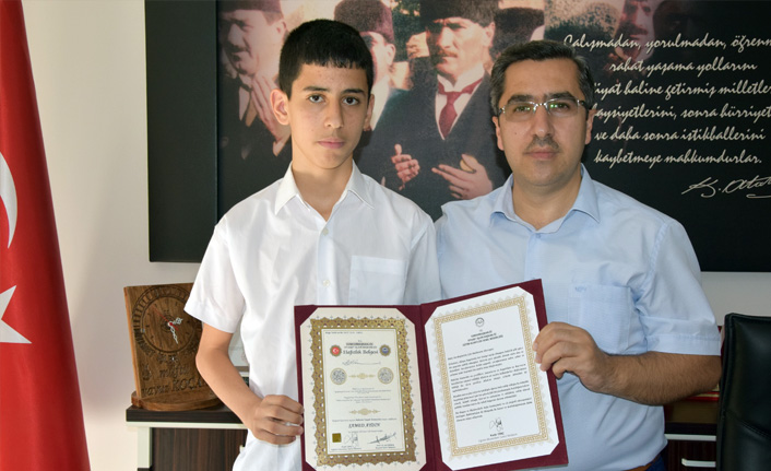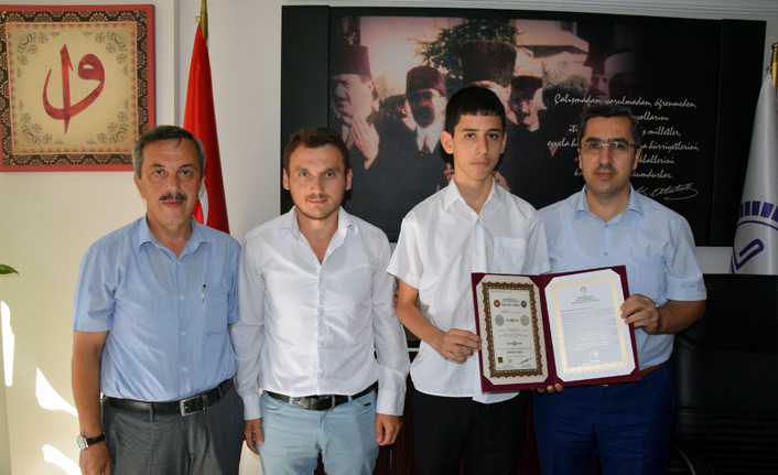 Espiye İlçe Müftülüğüne bağlı Merkez Erkek Yatılı Kur’an Kursu öğrencisi Samet Aydın (14), hafızlık eğitimini bir yılda tamamladı.