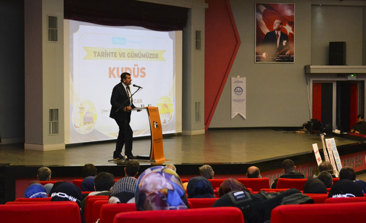 Açış konuşmasını gerçekleştiren Manisa İl Müftüsü Mustafa Soykök ise “Kudüs bizim davamızdır, Kudüs bizim sevdamızdır. Bizler Kudüs’ün özgür olduğu günlerde İslam’ın özgür olacağına, yeryüzünün daha yaşanabilir bir hale geleceğine inanan insanlarız. Geçmişte, Kudüs’te İslam hakim olduğu dönemde adaletin, barışın, merhametin egemen olduğuna şahit oluyoruz. Yine Müslümanların dirilip, toparlanarak yeni Selahaddin Eyyubi'lerin çıkması en önemli beklentimiz, umudumuz ve gayretimiz olacaktır.” diye konuştu.