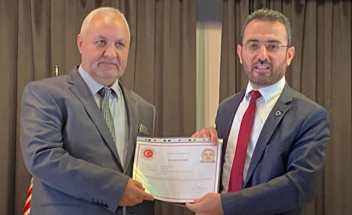 Başarılarından ötürü öğrencileri tebrik eden Hessen DİTİB Dini Danışma Kurulu Başkanı Sıddık Yıldırım, din görevlisi Mehmet Menteş’e başarı belgesi takdim etti.