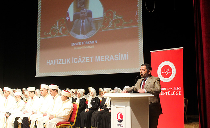 Burdur İl Müftülüğüne bağlı Kur'an kurslarında hafızlık eğitimini tamamlayarak Diyanet İşleri Başkanlığınca uygulanan Hafızlık Tespit Sınavı'nda başarılı olan 69 öğrenci, düzenlenen törenle belge aldı.