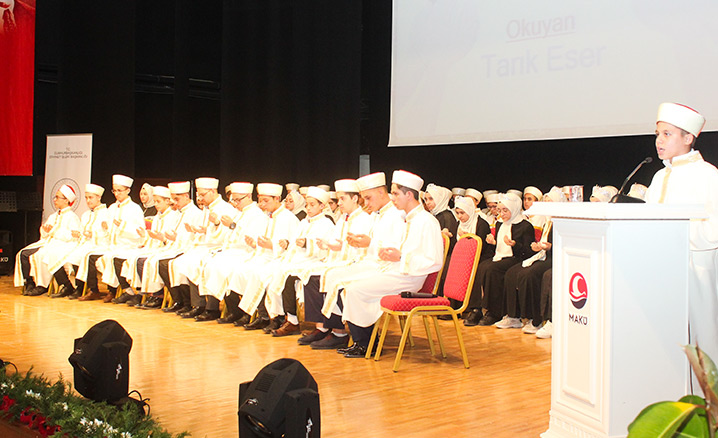 Burdur Merkez Bölge Yatılı Kur'an Kursu öğrencilerinin ilahi dinletisinin ardından hafızlığını tamamlayan öğrenciler Kur'an-ı Kerim tilavet etti, Kur'an öğrenmenin faziletine dair hadisler okudu.