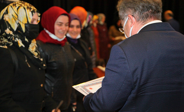 Seminerleri başarıyla tamamlayan kursiyerlere düzenlenen törenle belgeleri verildi.