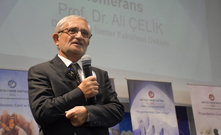 Prof. Dr. Çelik, "Şirkin hüküm sürdüğü bir ortamda yetim olarak dünyaya gelen Hz. Peygamber hayatın verdiği tüm zorluklarla karşılaşmıştır. Nihayetinde kırk yaşına geldiğinde risalet ile görevlendirilir ve on üç yılını Mekke'de on yılını ise Medine'de geçirir. Medine'de Efendimizin yaptığı ilk iş İslam Medeniyetini kurmak olmuştur. Bir medeniyet için düşünce planına, eylem planında değişim ve kurumlaşma gerekir. Efendimiz Medine'de bunu yapmıştır. Medeni surelere baktığımızda da bu vardır. Efendimizin Medine’de kardeşlik anlaşması yapması Mescid-i Nebi’yi yaptırması ve yanına eğitim yuvası olan Suffe’yi kurmasında da bu vardır. Nihayetinde Efendimiz İslam Medeniyetini kurmuş, risaletini tamamlamış, ve tebliğ vazifesini bizlere devretmiştir." diye konuştu.