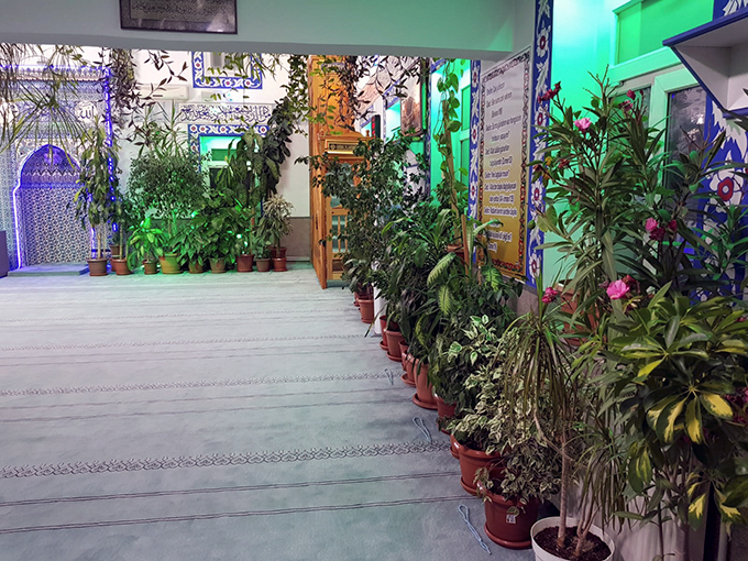 Çiçekli Camii, içerisinde bulunan rengârenk çiçekleri ve yemyeşil meyve ağaçlarıyla adeta bir bahçeyi andırıyor.