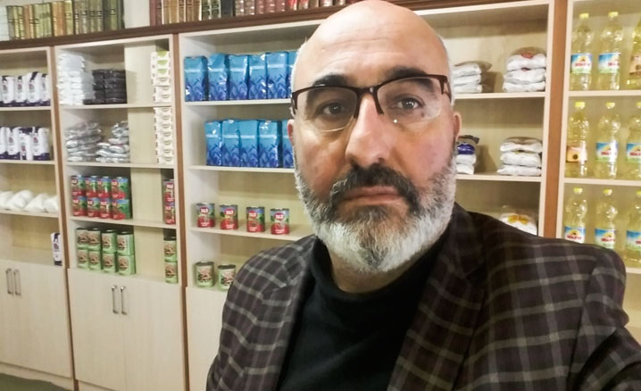 Yeni Mahalle Camii İmam Hatibi Ziya Akbaba, hayırseverlerin desteğiyle camide oluşturduğu bölümü, ihtiyaç sahipleri için gıda malzemeleriyle doldurdu.