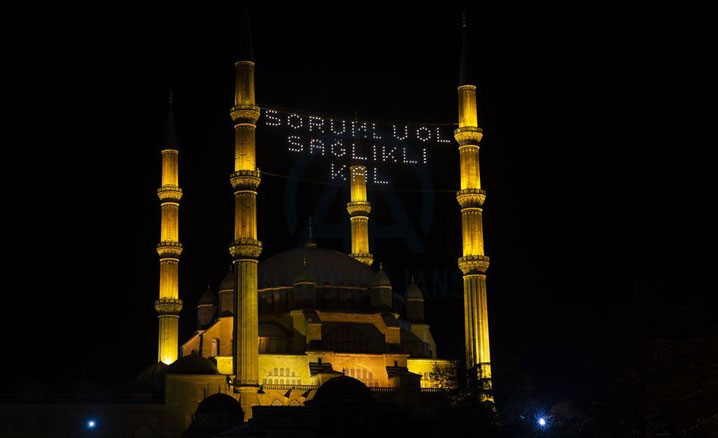 Mahya ustalarınca Vakıflar Genel Müdürlüğünün İstanbul'daki atölyesinde hazırlanan "Sorumlu Ol Sağlıklı Kal", "Hayat Eve Sığar", "Şifa Senden Ya Şafi", "Evde Kal Sağlıklı Kal" mesajlarını da içeren mahyalar camilere asıldı.