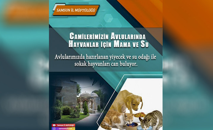 Samsun İl Müftülüğü, 4 Ekim Dünya Hayvanları Koruma Günü dolayısıyla hayata geçirdiği “Camilerimizin Avlularında Mama ve Su” projesi kapsamında 17 ilçede avlusu uygun olan camilere sokak hayvanları için mama ve su kabı yerleştirildi.