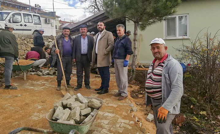 Caminin çevresini güzelleştirmek için din görevlisi Selahattin Türk öncülüğünde bir araya gelen köylüler, imece usulü ile cami bahçesine parke taşı döşedi.