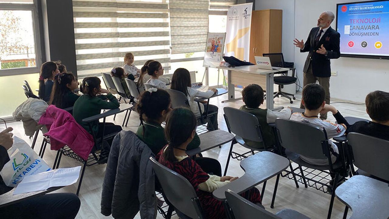 Öğrencilere teknoloji kullanımının bilinçli ve ölçülü yapılmasının önemi aktarılırken aşırı ve kontrolsüz teknoloji kullanımının birey üzerindeki olumsuz etkileri kapsamlı bir şekilde ele alındı. Seminer, öğrencilerin kendi teknoloji kullanım alışkanlıklarını sorgulamalarına imkan tanıyan Teknoloji Bağımlılık Testi uygulamasıyla tamamlandı.