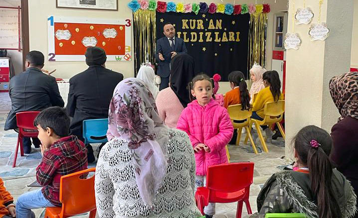 Program sonunda Kur’an kursunda eğitim gören ve Kur’an okumaya geçen minik öğrencilere taç giydirilerek çeşitli hediyeler takdim edildi.