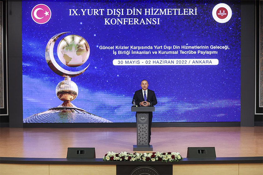 Dışişleri Bakanı Mevlüt Çavuşoğlu, ‘Güncel Krizler Karşısında Yurt Dışı Din Hizmetlerinin Geleceği, İş Birliği İmkanları ve Kurumsal Tecrübe Paylaşımı’ başlığıyla düzenlenen ‘9. Yurt Dışı Din Hizmetleri Konferansı’ kapsamında yurt dışında görevli Din Hizmetleri Müşaviri ve Ataşelere konferans verdi.