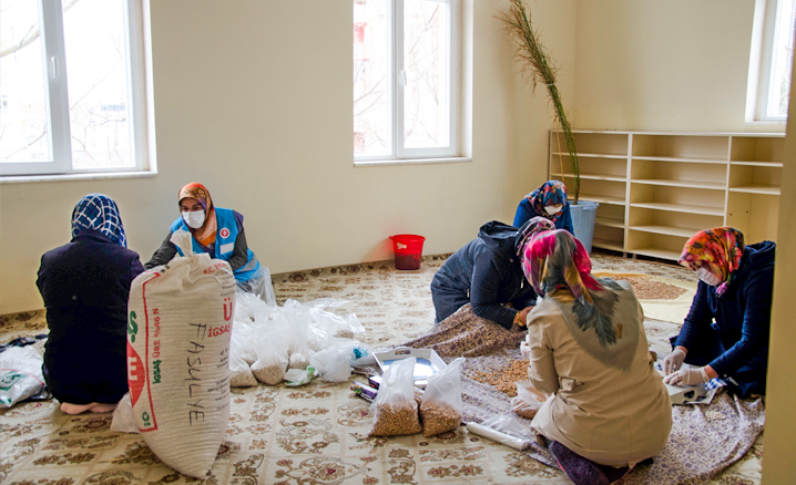 Çiçekli Camii İmam Hatibi Ahmet Aydemir, virüsle mücadele kapsamında camilerin kapatılmasının ardından cami içerisinde bulunan aşevi kısmını Vefa Çarşısı'na çevirdi.