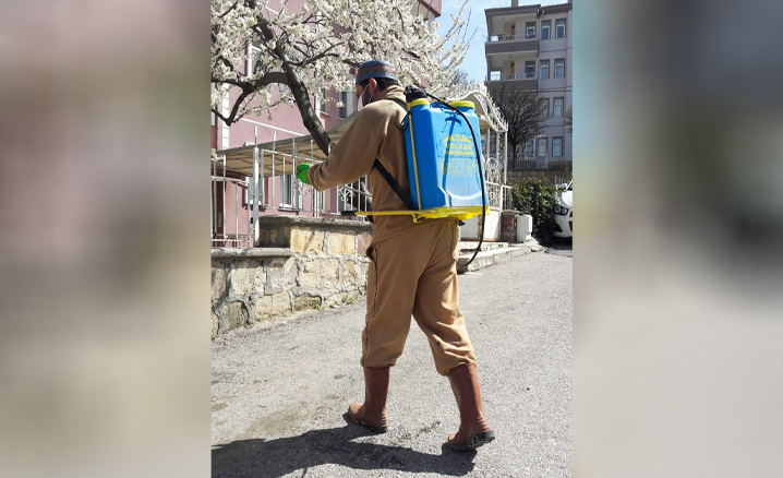 Bir taraftan ihtiyaç sahibi vatandaşların yardımına koşan din görevlileri, bir yandan da görev yaptıkları mahalleleri dezenfekte ediyor.