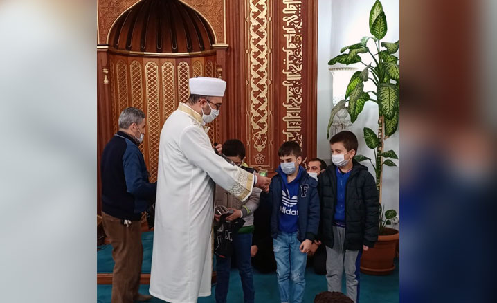 Törenin sonunda Müftü Bilgiç, çevrimiçi etkinliklere katılım sağlayan öğrencilere çeşitli hediyeler takdim etti.