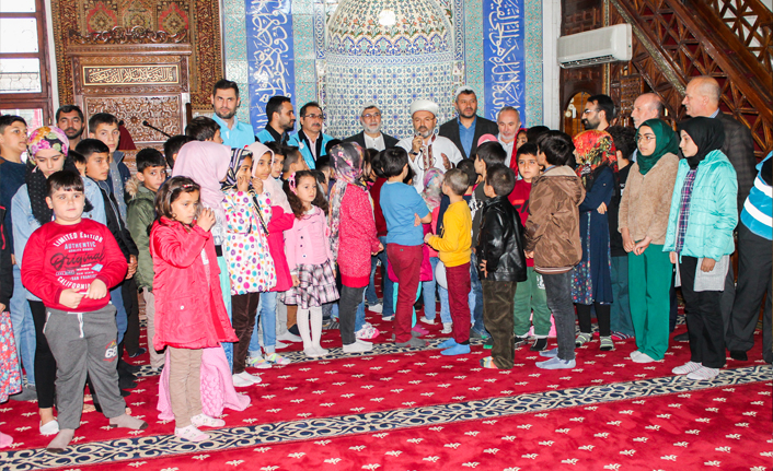 İkindi namazını çocuklarla birlikte kılan İl Müftüsü Ali Rıza Tahiroğlu çocuklara; müftü, vaiz, cami, minare, minber, mihrap, mahfil, imam hatip, müezzin kayyım gibi konularda kısa bilgiler verdi.